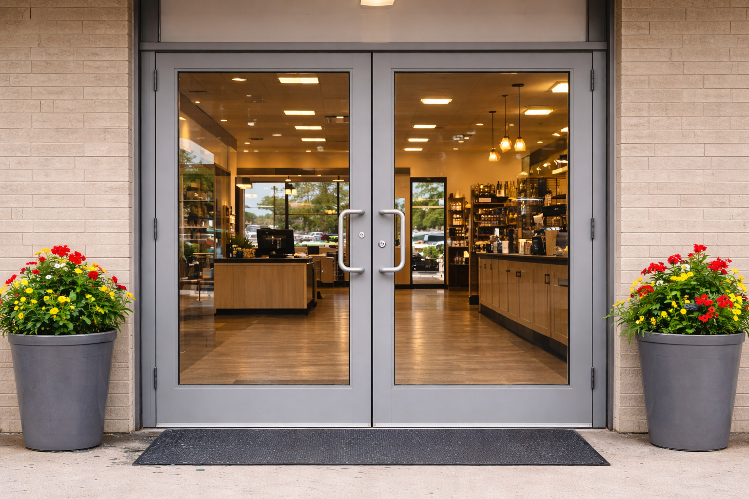 Yes. The page is written for urgent storefront, office, tenant-space, and customer-facing breakage as well as residential doors and windows.